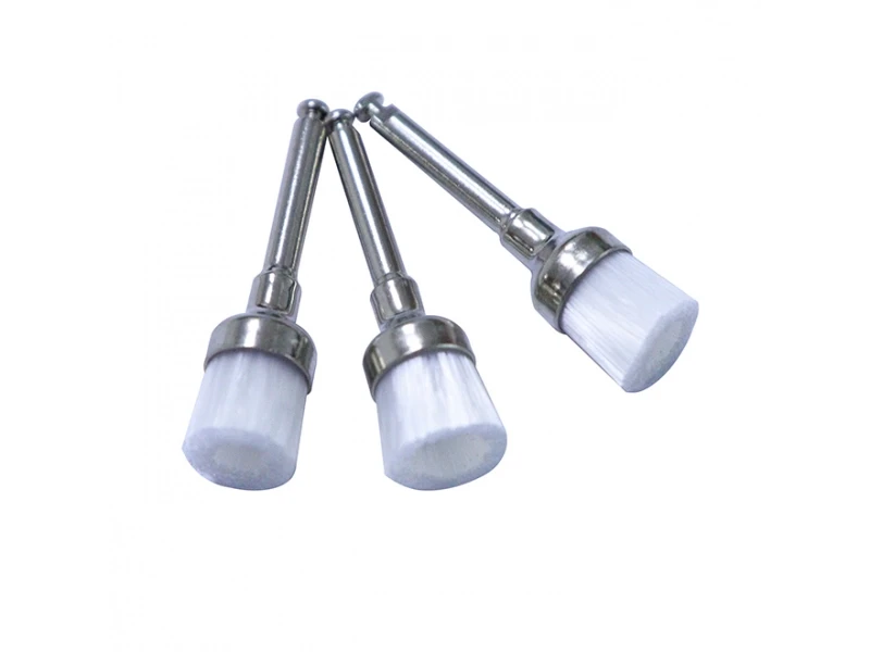 Disposable polishing prophy brushes with nylon tip and metal shank, single use.