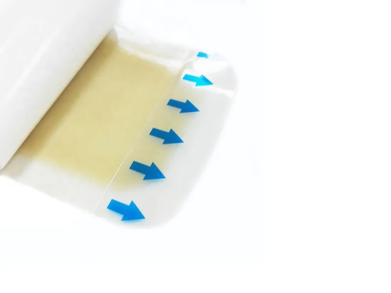 Highly absorbent (12~16times of fluid). It can absorb lots of exudes and reduce maceration to the skin.