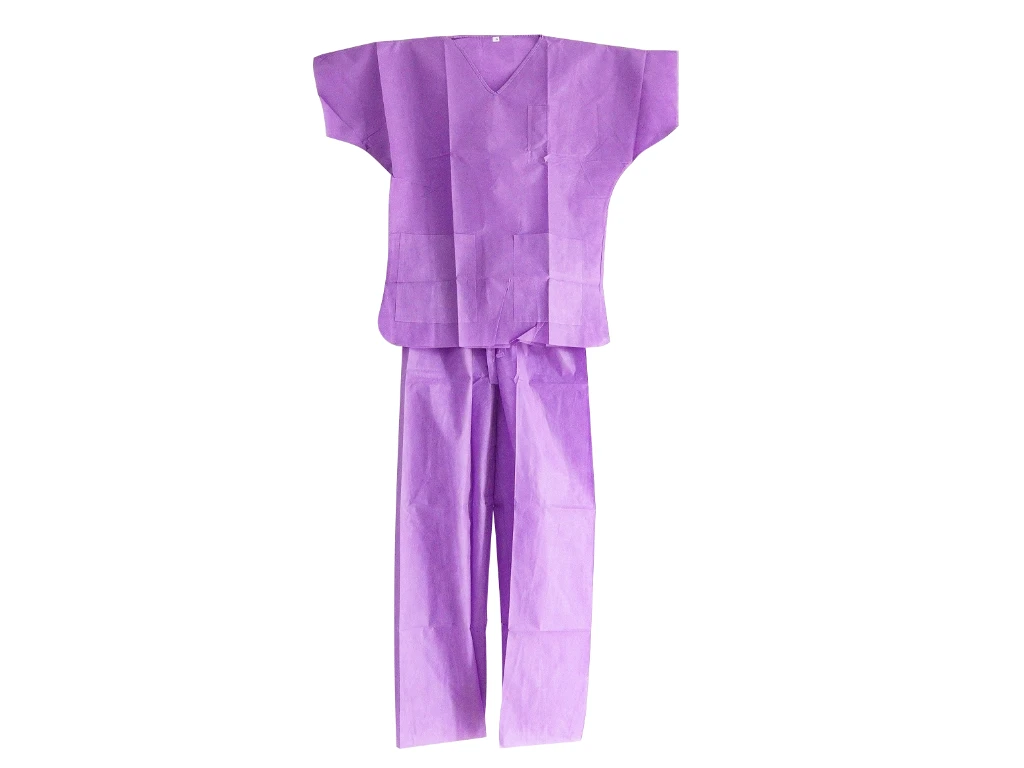 The surgical scrub suit is made of comfortable non-woven fabric in a unisex design.