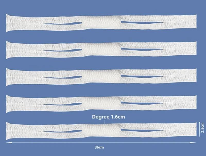 Venda nasal de cabestrillo también se conoce como venda elástica para la nariz o venda para cirugía nasal. Está hecho de almohadilla de algodón suave, cilíndrica y altamente absorbente cubierta por venda tubular de red elástica, y se ajusta fácilmente al paciente pasando las correas adjuntas alrededor de las orejas.