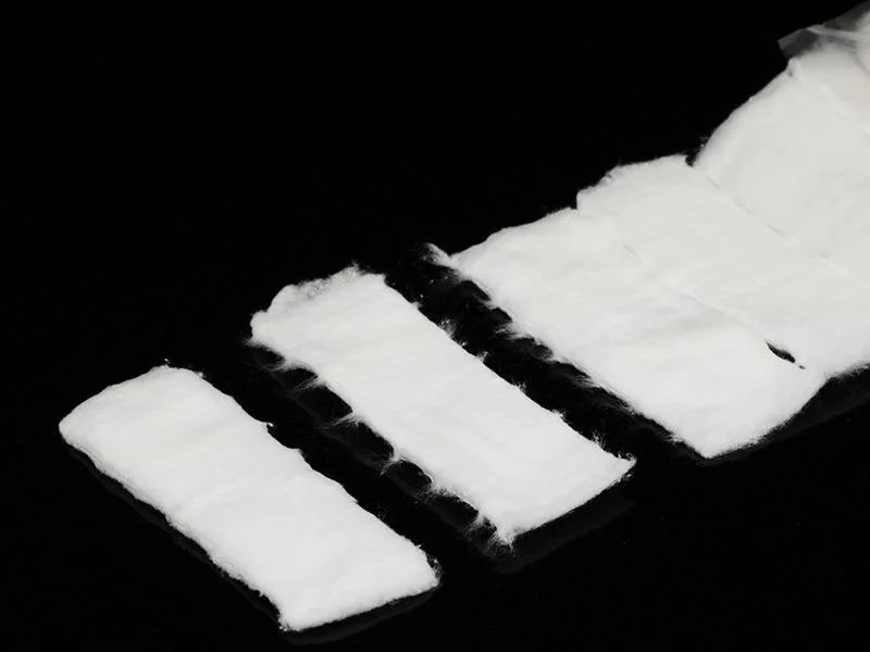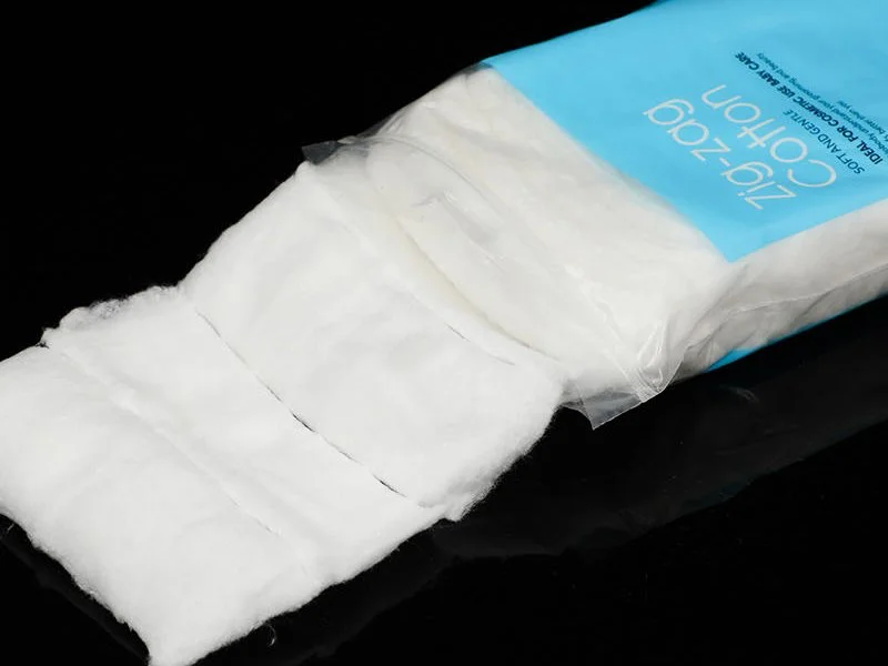 Cotton pleats come in a long strip or sheet format, with multiple layers of cotton that have been folded and pressed together. They can be easily separated into individual pieces for use as needed, and are commonly used for cleaning wounds, applying ointments or medications, and cleaning or drying sensitive skin areas.